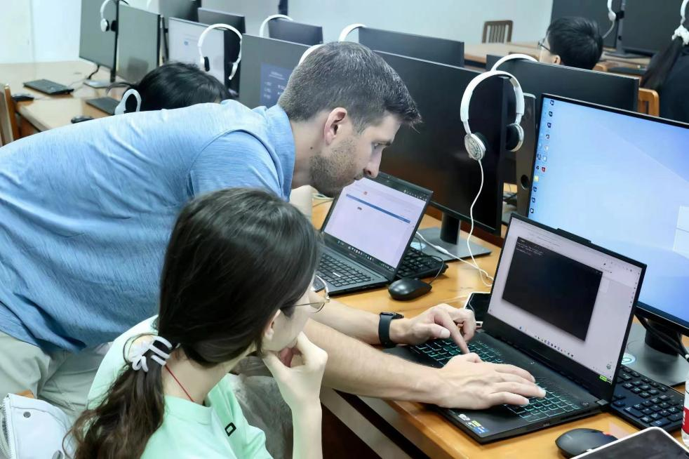 广外—密苏里暑期教学周邀请到美国密苏里大学伟德国际1949的Dr. Ernest Zhang和Caleb Heinzman老师,为学院本科生讲授“人工智能在新闻传播领域的应用及如何避免ChatGPT的错误”课程,吸引了来自各年级、各专业的30余名学生报名参与。通过课程学习,学生得以了解人工智能在新闻传播领域里的应用,并完成人工智能在新闻传播中应用的基本设计。两位老师授课经验丰富,在他们的悉心指导下,学生们系统地进行python语言深入学习,学习内容涵盖自然语言处理、计算机视觉和机器学习,以及如何理解和运用电脑编程创造性地解决新闻报道中的问题。通过学习,同学们了解了人工智能与新闻传播结合领域的先进观念与前沿知识。