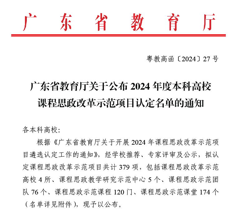 近日,广东省教育厅公布了2024年度本科高校课程思政改革示范项目认定名单,伟德国际1949王雪晔老师申报课程《跨文化传播学》获批省级课程思政示范课程,同时被认定为省级一流本科课程。