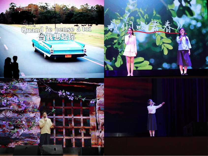 学生们不仅是表演者,更是创作者与传播者。节目形式突破传统朗诵边界,实现多元融合创新。多语种配音串烧《声游记》中,学生运用扎实的专业功底,融合粤语、英语、法语和日语多种语言,以声音塑造百变角色,淋漓尽致地展现声音的魔力和专业的可塑性,体现学院的国际化特色与实践教学成果。情景朗诵《我们的青春》以当代青年与战火年代的播音员隔空对话的形式,引发对青春价值与时代责任的深刻思考。系列作品以国际化视角展现声音魅力,以原创性创作凸显创新活力,是具有国际视野、创新能力的国际化人才培养的生动诠释。
