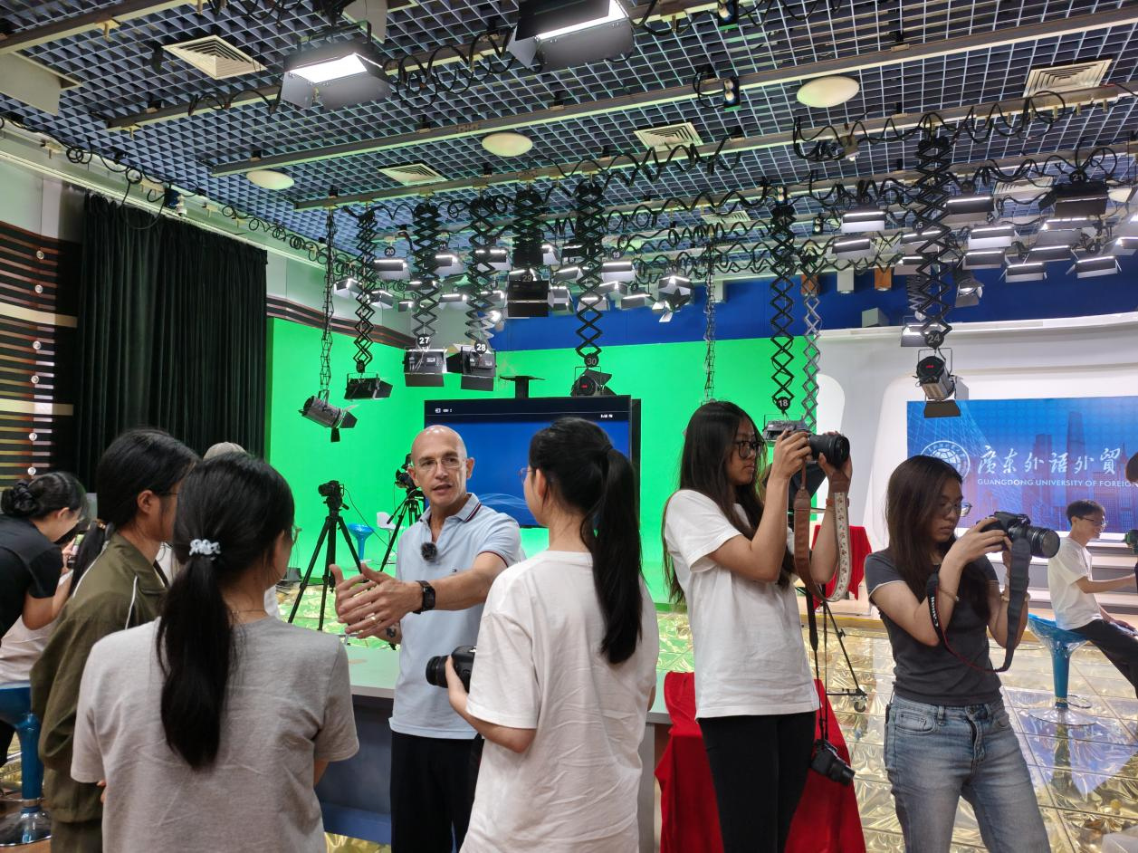 课堂上,Dr. Chad Owsley 延续了其擅长的案例分析、小组讨论、现场实操等多元化教学方式。在基础参数学习环节,他通过对比不同 ISO、光圈、快门组合下的画面效果,让学生直观理解参数对画质的影响;在视频叙事教学中,组织学生分组分析优秀新闻视频案例,提炼其镜头运用和剪辑逻辑,全程体验视频新闻创作过程,Dr. Chad Owsley 巡回指导,针对性解决学生在实操中遇到的问题。