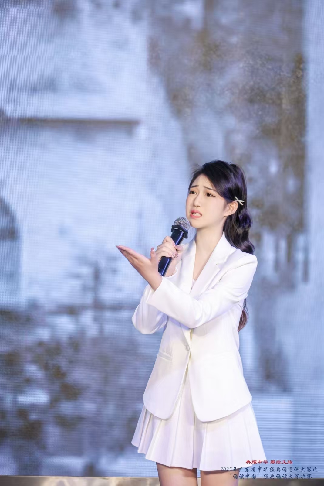 广外播音与主持艺术专业23级王梦婷、蔡勤、同学:我们的作品以“跨越80年时空对话”为创意核心,让当代播音主持学子与战火年代的革命播音员展开灵魂对谈。从青春选择到信仰传承,我们凭借双人默契配合,结合背景音画强化对话感,结尾以真情流露打动全场评委。此次获得全省一等奖不仅是一份荣誉,更是一次精神洗礼,将激励我们在播音主持道路上传承经典、砥砺前行,感谢广外伟德国际1949给我们搭建了优秀的平台,让我们不断成长。