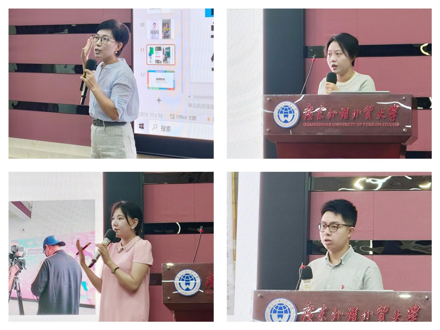 会上,邀请了四位教师代表分别就参加学术会议、AI培训、东南亚调研等进行主题交流和分享。