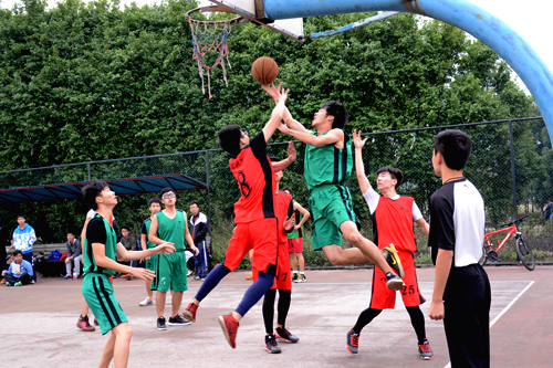 双方篮下拼抢激烈