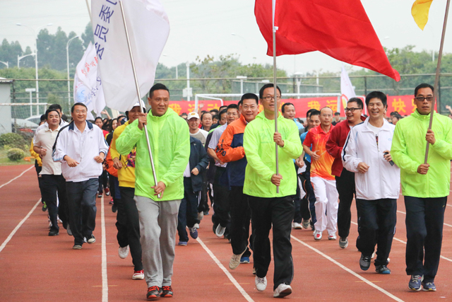 一声令下,三面旗子先行,校领导们也步伐矫健、井然有序地领跑各院方阵。尽管初冬的清早气温清劲,但各方阵的学生的脚步却充满朝气与活力。特别是留学生学院的方阵队员们,更是在奔跑的过程中热情地挥手欢呼。