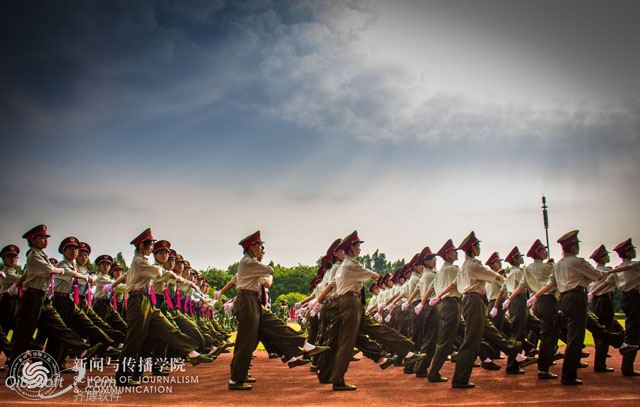 本次军训摄影大赛的一等奖作品是新传学院大二学生陈诗蔚的《军训阅兵》。在随后的采访中她表