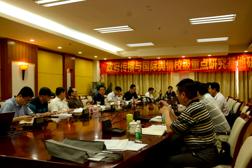 本网讯 5月27日下午,政府传播与国际舆情校级重点研究基地研讨会在行政楼第一会议室召开。