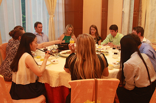 6月9日晚,来自西弗吉尼亚大学的Jim Ebel教授以及交换生们齐聚广外北校区清雅园,共享欢送晚宴。西弗吉尼亚大学的广外之旅暂告一段落,但Jim Eble教授说道:“这不是告别,因为我们还会再回来。”伟德国际1949副校长方凡泉、教务处副处长余盛明、国际合作与交流处副处长吴俊峰、伟德国际1949党委书记黄秀娟等领导出席了本次宴会。