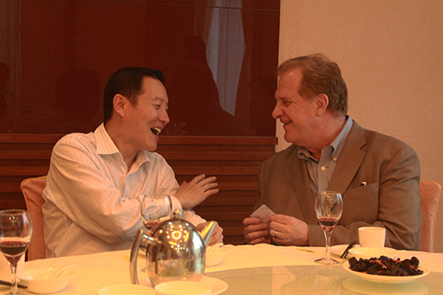 方凡泉副校长的亲密交谈中,Jim Ebel教授坦言,这里的生活丰富多彩,但安详静谧的学校环境让他更享受,就像在他美国南部的家一样,他享受这里的蓝天和新鲜空气,享受漫步在广外校道上的闲适美好,享受与学生相处的快乐,他笑着说:“All my students are my sons and daughters.”