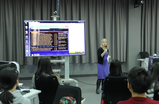 目前,Sheridan Prasso供职的媒体——彭博社,是一家财经资讯公司,也是全球最大的金融信息服务供应商。Sheridan Prasso介绍,彭博社成立于1981年,目前在中国的覆盖面较小,尚只在北京、上海和香港三地设有办事处。随后,Sheridan Prasso向同学们展示了彭博社的内部工作平台,每一个员工可以通过平台共享公司生产、发布的信息。