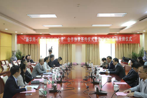 新华网广东分公司总经理兼总编辑汪金生、副总编黄玫、涂胜、伟德国际1949副校长刘建达、教务处处长袁长青、伟德国际1949院长杨魁以及副院长何国平等人员出席了本次仪式。