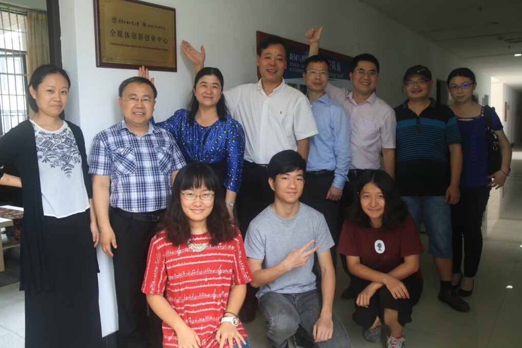 4月25日,伟德国际1949在院系楼253举行“全媒体创新创业中心”揭牌仪式。院长杨魁、党委书记黄秀娟等全体学院领导和系主任、指导老师、学生创新创业骨干等近20人参加了仪式。
