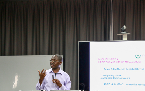 通过练习题与问答游戏,Yusuf Kalyango向同学们传达了一些观点:想要成为一个撰写和平新闻稿的记者,要学习如何进行危机传播管理。如要从多角度分析新闻事件、站在不同个体的立场上换位思考、用发展的观点分析暴力事件与冲突、深入探讨多方目标、展示人们在暴力、抗议或危机扩散中是如何被剥夺权利的等等。
