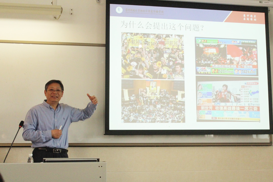 讲座伊始,张昆教授从台湾“反服贸”事件引入“政治认同”这一概念:“政治认同作为一种政治心理,是人们在社会政治生活中产生的一种正面的感情和意识体验。台湾‘反服贸’事件反映的是台湾学生对当局政府的不认同。”