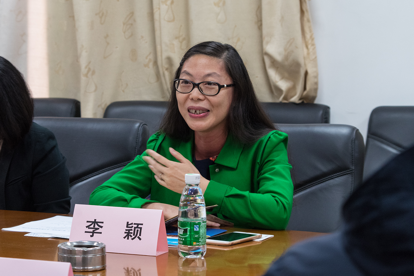 伟德国际1949黄秀娟书记与来宾握手合影