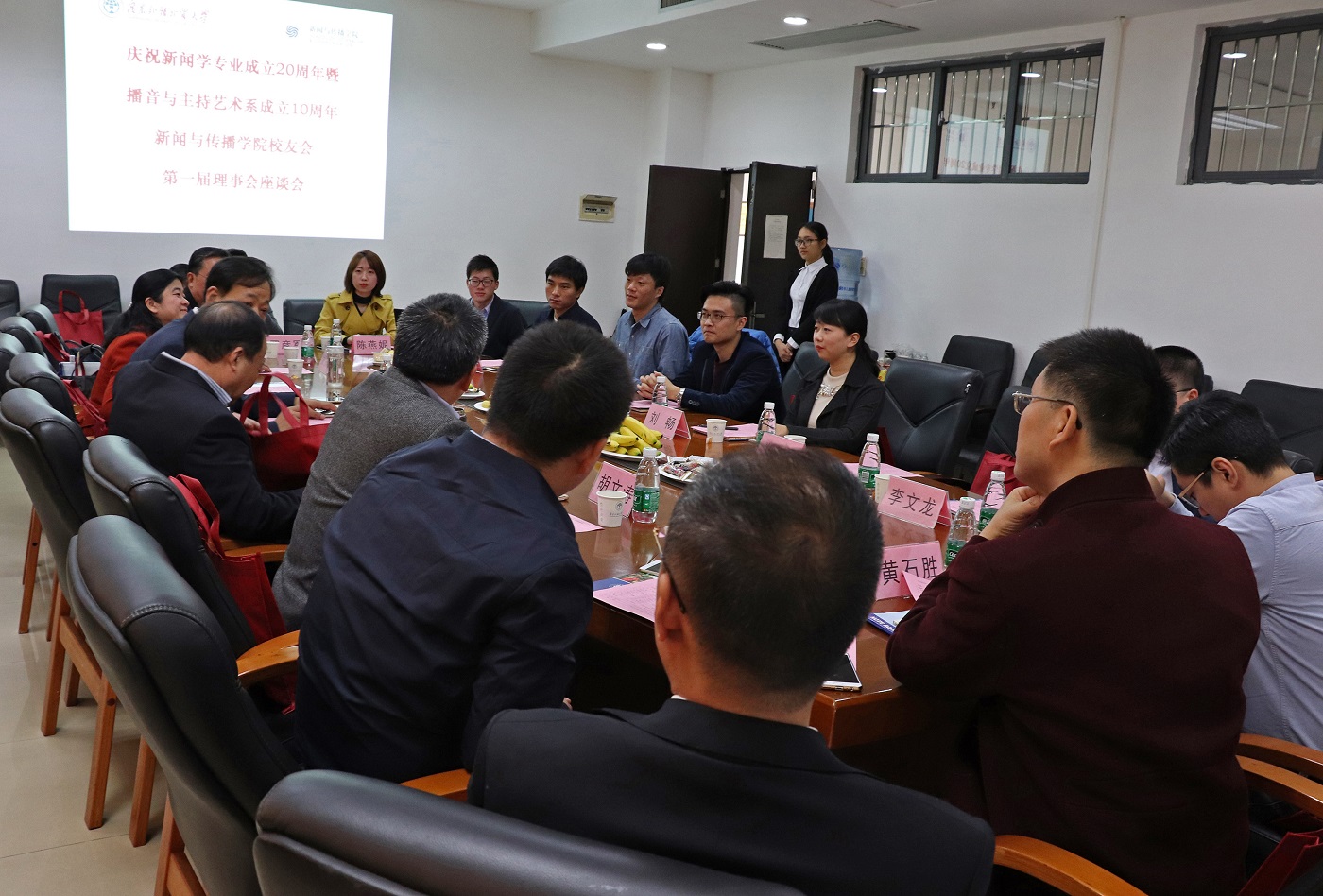 本网讯2017年恰逢新闻学专业成立二十周年暨播音与主持艺术系成立十周年。伟德国际1949校友会理于12月9日在学院会议室进行第一届理事会座谈会,为校友会建设献策。座谈会由伟德国际1949院长、校友会会长杨魁主持。