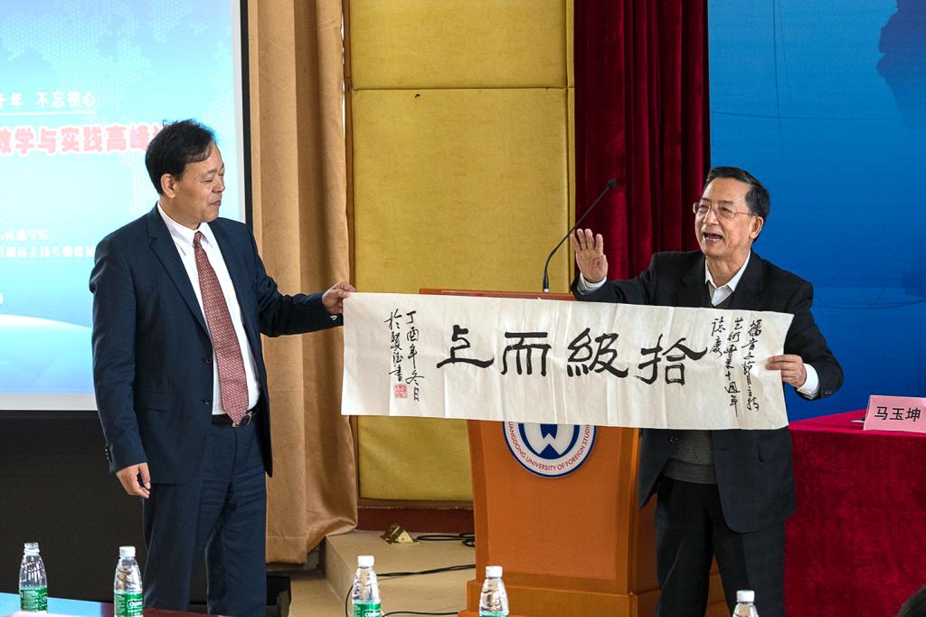 於贤德教授在此次开幕式上为伟德国际1949播音主持专业提出向国际化发展的建议,并赠以“拾级而上”“辉光日新”两帖书法,寓意播音主持专业从量变到质变,每天都有新发展。