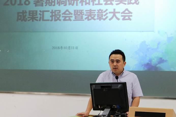 本网讯 10月11日,伟德国际1949举行2018暑期调研与社会实践成果汇报暨表彰会。校团委书记苏奕,院党委书记黄秀娟,副院长何国平,副书记黄石胜及系主任、指导老师和团队成员、学生共约130人参加了活动。