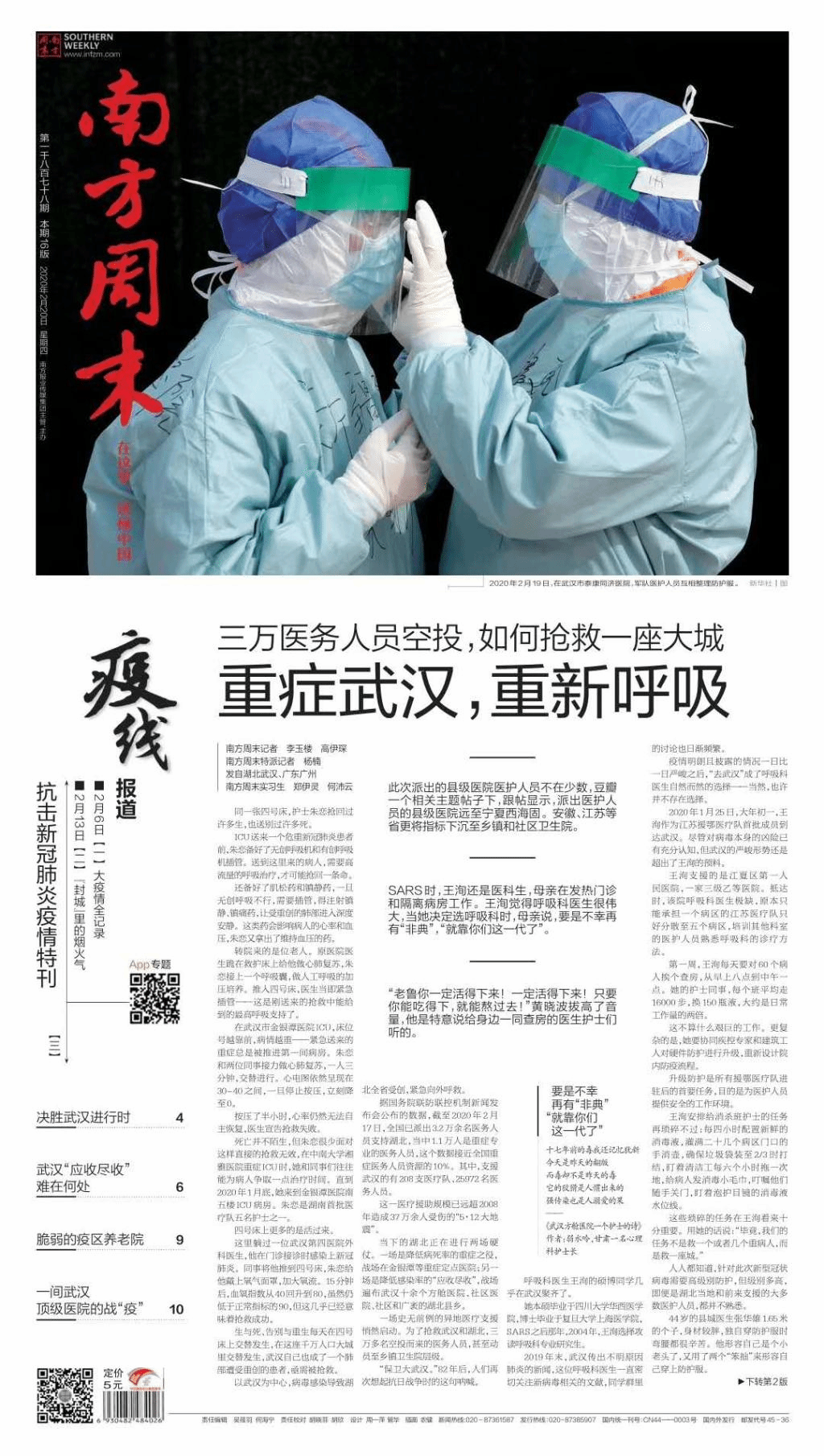伟德国际19492012级国际新闻专业本科、2016级新闻与传播专硕校友高伊琛毕业后任职南方周末,此次参与南方周末特刊重磅报道《重症武汉,重新呼吸 三万医务人员空投,如何抢救一座大城》并担纲采写疫情报道多则。