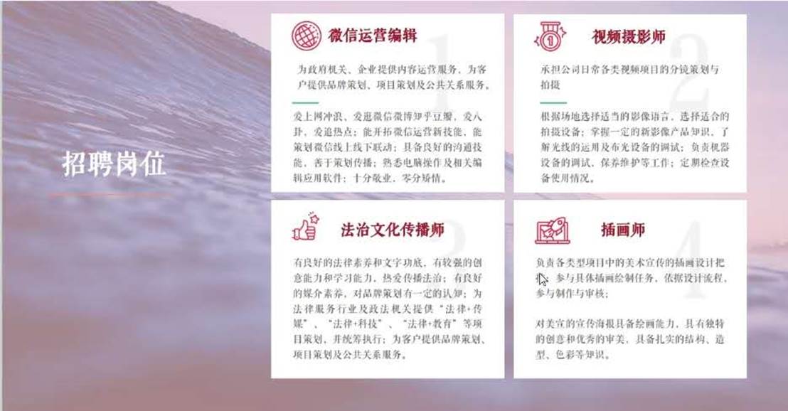 接着,陈雁明总监重点介绍了面向伟德国际1949应届毕业生的招聘岗位,说明岗位招聘的工作职责和应聘要求,并表示非常欢迎大家积极投递简历。