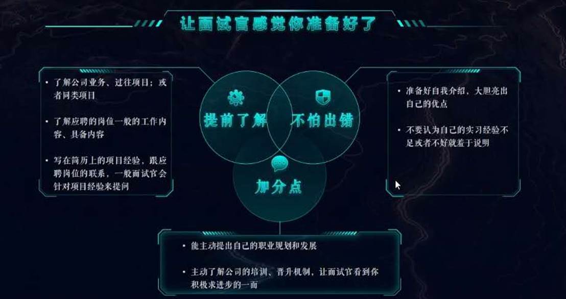 活动第二部分,陈雁明总监从面试官的角度为大家带来云面试技巧分享,她结合个人经历的面试案例,围绕“提前了解、不怕出错、加分点”三个关键词展开分享。她提到,首先,要提前了解,通过官方网站提前对公司业务、过往项目、应聘岗位有一个详细的了解。同时要提前准备,一方面要在简历上突出与应聘岗位相关经历;另一方面,自己要非常清楚自己的简历内容,在面试中做好回答的准备。其次,在面试中要不怕出错,准备好自我介绍,不要认为自己的实习经验不足或者不好羞于说明,即使是平常的实习经历,也可以大胆挖掘和亮出自己的优点。最后,在面试中,能够展示自己的职业规划和发展,让面试官看到你积极进取以及有明确目标的一面是加分点。