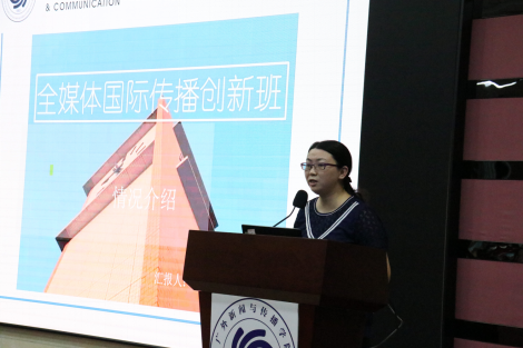 副院长朱颖教授向新生介绍了“全媒体国际传播创新班”开设目的、课程设计、教学资源、中外名师、本硕连读项目等。