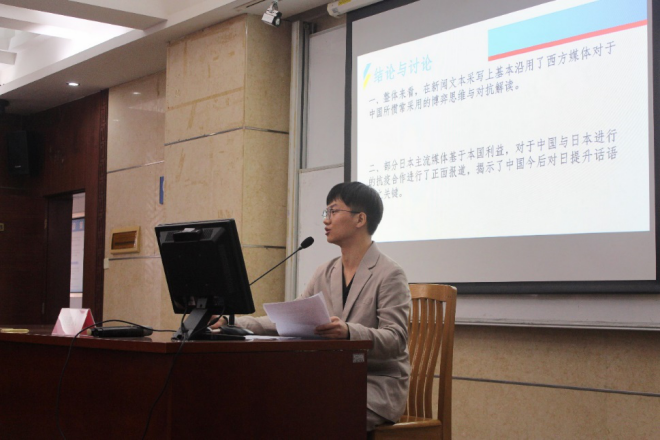 中国传媒大学传播研究院的邓天奇以《日本主流媒体涉华疫情报道的框架建构研究》为题发表演讲。他从日本涉华媒体新冠肺炎报道的主题和特征、如何进行框架建构以及框架建构的选择原因等研究问题出发,运用框架理论,发现日本涉华媒体的报道主题涵盖了政治、卫生、社会以及经济等方方面面,并且有明显政治倾向。他指出,日本涉华媒体的新闻报道在新闻文本上仍沿用了西方媒体对于中国所惯常采用的博弈思维与对抗解读。亦有部分日本主流媒体基于本国利益,对中日抗疫合作进行了正面报道,验证了今后两国加强合作、共同抗疫的共识,也为我们提示了中国加强对日话语权的重要性。