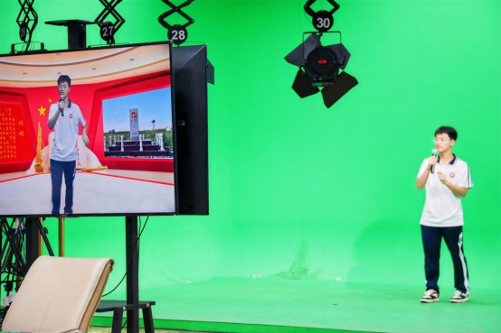 宣讲会结束后,河源中学师生在志愿者的带领下参观了全媒体创新实验中心。同学们在虚拟仿真演播实验室深入体验了虚拟仿真演播教学与实践活动,虚拟仿真演播实验室作为在兄弟院校中首屈一指的三维虚拟演播系统和虚拟主播实训系统,能够通过三维绿幕抠像、空间建模及摄像跟踪技术,模拟真实的时空环境。在融合媒体实验室,全媒体创新实验中心主任何钢老师细致地为同学们讲解全媒体软件的操作以及多媒体作品创作的过程,引发了同学们对新闻传播专业的浓厚兴趣。