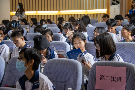 “白云山青,碧溪水蓝,携侣中外......”悠扬的广外校歌缓缓响起。在宣讲会的最后,河源中学师生共同聆听了广外的校歌《凤鸣岭南》,深刻感受广外的历史和文化,优美的旋律与动听的歌声激发了同学们对广外的向往之情。