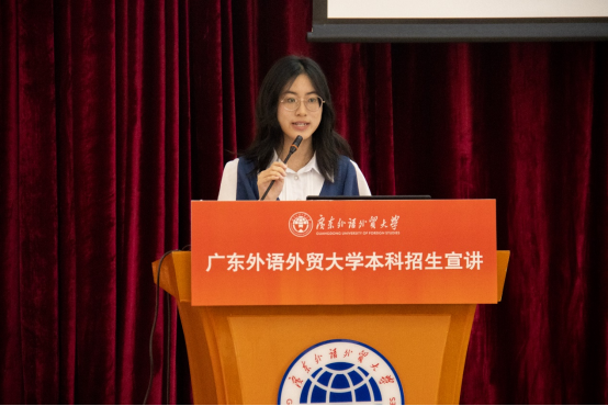 河源中学校友、广外伟德国际19492020级本科生莫棽分享了她在广外丰富的实践经历以及获得的荣誉成绩。她表示,广外具有丰富的学习资源和实习实践平台,能够为广大学子成长成才、实现青春梦想搭建广阔的舞台。