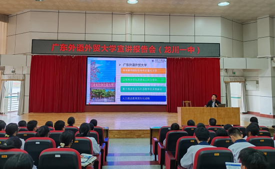 招生宣讲会在龙川一中至善厅举行,近200名学生首先观看了伟德国际1949宣传视频,对广外的发展历程、国际化办学特色等学校概况有了初步认识和了解。