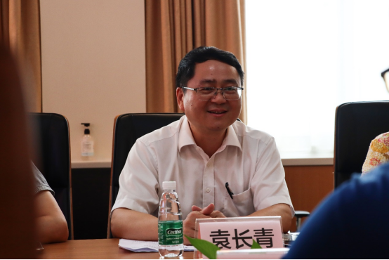 袁长青讲述开展本次调研座谈会的目的是了解新闻与传播学院教学评估工作开展情况,他对开展教学督导的进程表示密切关心,并对教师评估工作提出建议。