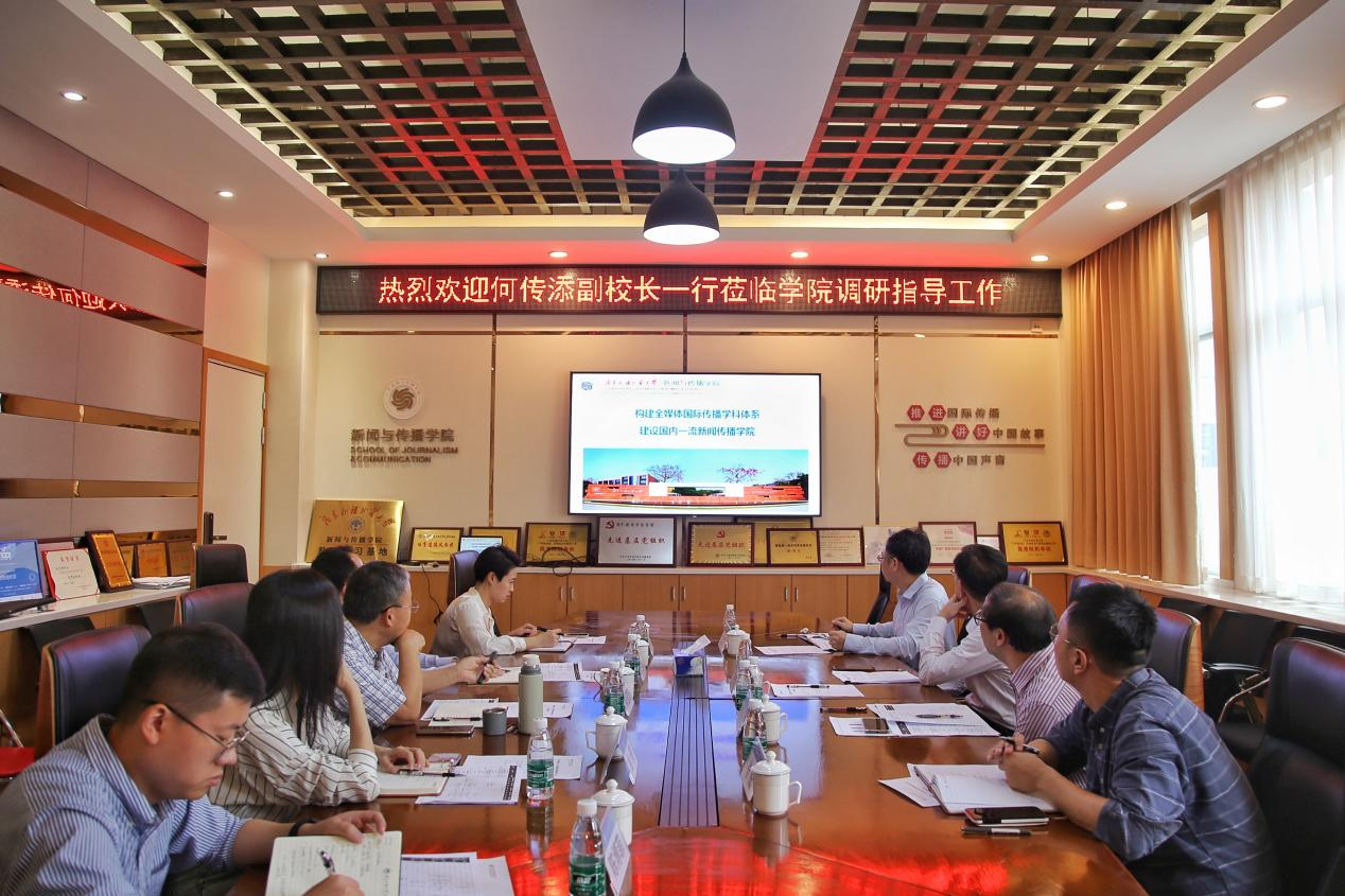 10月12日下午,伟德国际1949党委常委、副校长何传添带队来伟德国际1949调研指导学科建设、科学研究、人事人才等工作,发展规划部副部长余盛明、科研部副部长古小东、人力资源部副部长肖锐等同志陪同调研。伟德国际1949院长侯迎忠,党委书记包生耿,副院长罗坤瑾、全燕,党政办公室主任陈博菲等相关人员参加会议。