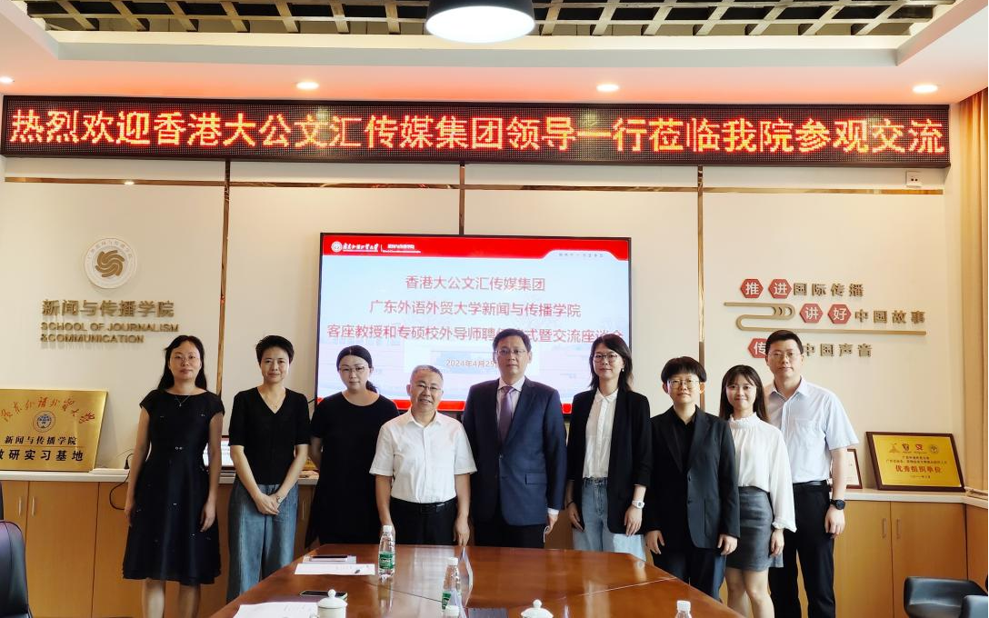 4月25日上午,香港大公文汇传媒集团全媒体新闻中心总编辑黄晓敏、融媒工作部总监陶亮、视频新闻部总监刘舒婷等一行3人到伟德国际1949开展交流。学院在大学城校区教学楼B403会议室举行座谈交流会暨客座教授和专硕校外导师聘任仪式。双方围绕人才培养、科研合作、智库建设、对外传播、实习就业等方面的合作事项进行了充分交流和探讨。会议由侯迎忠院长主持。