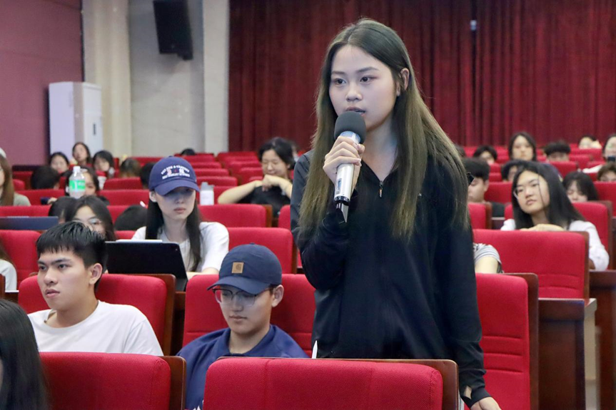 在提问环节中,学生提出如何在实践中寻找创新发展方向以及如何提高自己竞争力的问题,胡教授就提出的问题做出了简要回答。她表示,当代大学生应该留意发展趋势、放眼世界,并把技能运用到创新当中去,更好适应瞬息万变的时代。