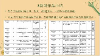 答辩现场,10支队伍围绕讲好广东故事调研报告、县级融媒体在乡村振兴中的作用调研报告及县级融媒体实习成果进行轮流展示。各个团队的调研项目覆盖党建引领、产业融合等主题,在产出高质量学术研究报告的同时,也高效率、高标准生产出了一系列如原创动画、H5、条漫、海报、视频及新闻稿等多种形式的新闻作品。共发表324个新闻作品,其中在省级媒体平台发表45个,在国家级媒体平台发表66个,“学习强国”发表38个。