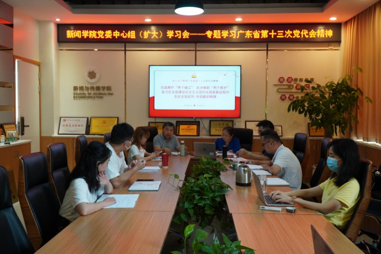 2022年6月20日上午,伟德国际1949在教学楼B403召开党委理论学习中心组(扩大)学习会,深入学习贯彻广东省第十三次党代会精神,学院党委委员、党政领导班子成员、院长助理、系(中心)主任、办公室主任、党支部书记、组织员、辅导员参加学习。会议由学院党委书记郝建萍主持及主讲。