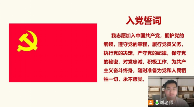 活动开始,全体党员重温入党誓词,在云端共同起立,举起右拳,面对党旗庄严宣誓:“我志愿加入中国共产党,拥护党的纲领......”。