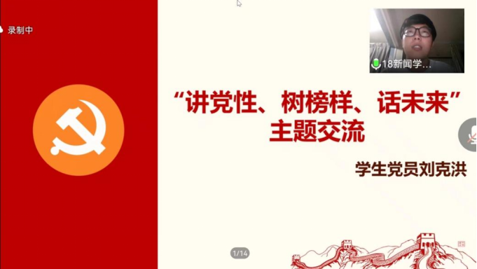 毕业生党员刘克洪以“讲党性、树榜样、话未来”为主题进行了分享。他表示,作为党员要坚定理想信念,自觉加强党性修养,不忘入党初心,永葆党员本色。同时,他结合自身求职经历,分享了求职面试经验,鼓励未就业的党员调整心态,积极就业。