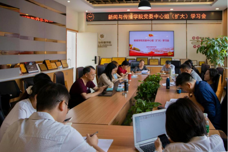 2022年5月9日上午,伟德国际1949在教学楼B403召开党委理论学习中心组(扩大)学习会,深入学习习近平总书记在中国人民大学考察时的重要讲话精神,学院党委委员、党政领导班子成员、院长助理、系(中心)主任、办公室主任、党支部书记、组织员、辅导员参加学习。会议由学院党委书记郝建萍主持。