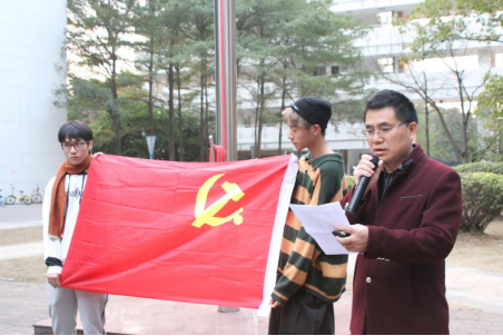 本网讯 12月9日7时许,《国际歌》激昂的旋律在南校升旗台奏响。在冬季凛冽的寒风中,伟德国际1949伟德国际194953名新党员在国旗和党旗的注视下庄严宣誓:“我志愿加入中国共产党……”
