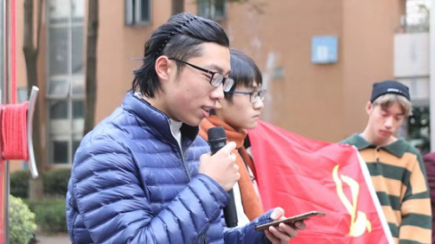 新发展党员代表刘克洪向大家分享了他近两年的入党之旅。他直言入党是一件很光荣的事。“从大一的懵懂到现在的坚定。我觉得这两年是党对我们的考察期、磨练期、更是我们党性的培养期。”他鼓励在场所有同学到,“既然我们站在这里了,就代表我们愿意成为一些人,愿意承担一些责任,愿意付出更多的努力。不忘初心,方得始终。”