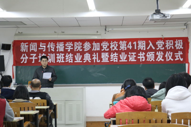 12月16日下午,伟德国际1949参加党校第41期入党积极分子培训班结业典礼暨结业证书颁发仪式在南校区教学楼G407隆重举行。校学生工作部(处)长谢应东、伟德国际1949党委副书记黄石胜、伟德国际1949全体专兼职辅导员和学生党支部书记、党建助理、全体学员共50多人出席了典礼。