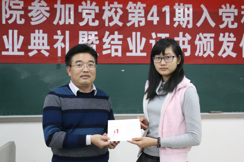 新闻1301班的郭淑芬同学作为学员代表,在发言中表示“通过党校学习,对党的认识和理解升华到了一个新的高度。党校的学习虽然结束了,但是对党的追求才刚刚开始,将用坚定的行动积极创造条件争取早日加入中国共产党。”