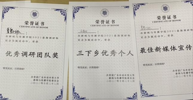 石潇玥(上图左一),新闻学(全媒体国际传播创新班)2020级学生,大学前三学期平均GPA:3.86,参加“挑战杯”大学生课外学术科技作品竞赛、“挑战杯”大学生创业大赛、演讲比赛、模拟新闻发布会等活动并获奖,荣获广东省教育厅2021年“立志·修身·博学·报国”主题教育系列活动摄影二等奖,2022年4月被美国密苏里大学伟德国际1949录取为“2+2双学位”学生。