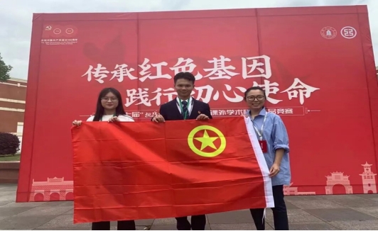 2020级播音主持艺术专业朱育锋同学(中)勇夺第十七届“挑战杯”全国大学生课外学术科技作品竞赛红色专项活动一等奖