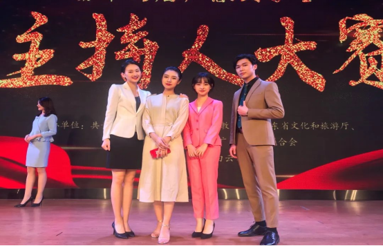 广外播主学生邓毅成(右1)王伊雯(右2)王怡兰(左1)黄若雨(左2)分获第十四届广东省大学生主持人大赛一、二、三等奖