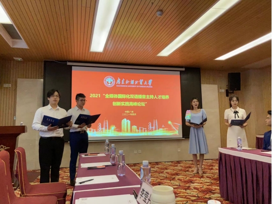学生在“全媒体国际化双语播音主持人才培养创新实践高峰论坛”做开场朗诵
