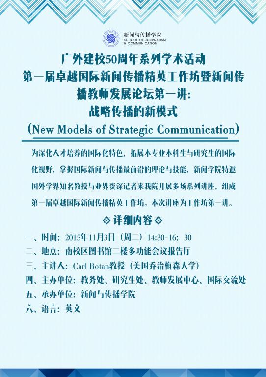 同时Botan教授还会就公共关系与战略传播的相关内容与伟德国际1949研究生进行小型座谈