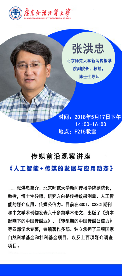 张洪忠:传媒前沿观察讲座:人工智能+传媒的发展与应用动态
