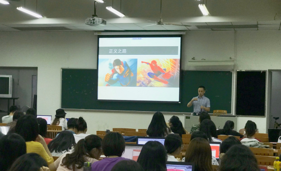 讲座伊始,卢家银教授以美国漫画人物中的Superman和Spiderman两张图片为引子,说明了新闻工作者是超人而不是普通人,并且提醒在座的同学们作为一名新闻工作者在获得荣誉感和追求社会正义的时候,要有最基本的底线伦理,己所不欲勿施于人。